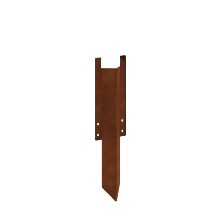 De grondpin is vervaardigd uit hoogwaardig Cortenstaal. Dit bijzondere staal ontwikkelt een robuuste, dichte oxidehuid die verdere corrosie voorkomt. Hierdoor blijft het materiaal duurzaam en sterk, ook bij langdurige blootstelling aan vocht en wisselende weersomstandigheden. Cortenstaal is een metaallegering van ijzer met koper, fosfor, silicium, nikkel en chroom, wat het zijn unieke eigenschappen geeft.