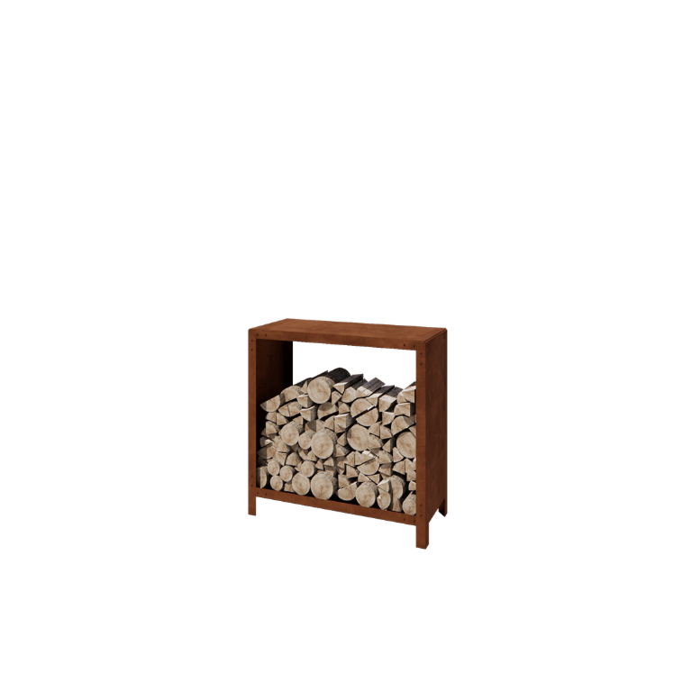De Indiana houtopslag is vervaardigd uit hoogwaardig Cortenstaal, dat beschermd wordt door een natuurlijke roestlaag. Dit staal bevat koper, fosfor, silicium, nikkel en chroom, wat zorgt voor een extra duurzame en weersbestendige afwerking. Dankzij deze unieke oxidehuid blijft de opslag jarenlang sterk en krijgt hij een warme, natuurlijke uitstraling die in de loop van de tijd verdiept.