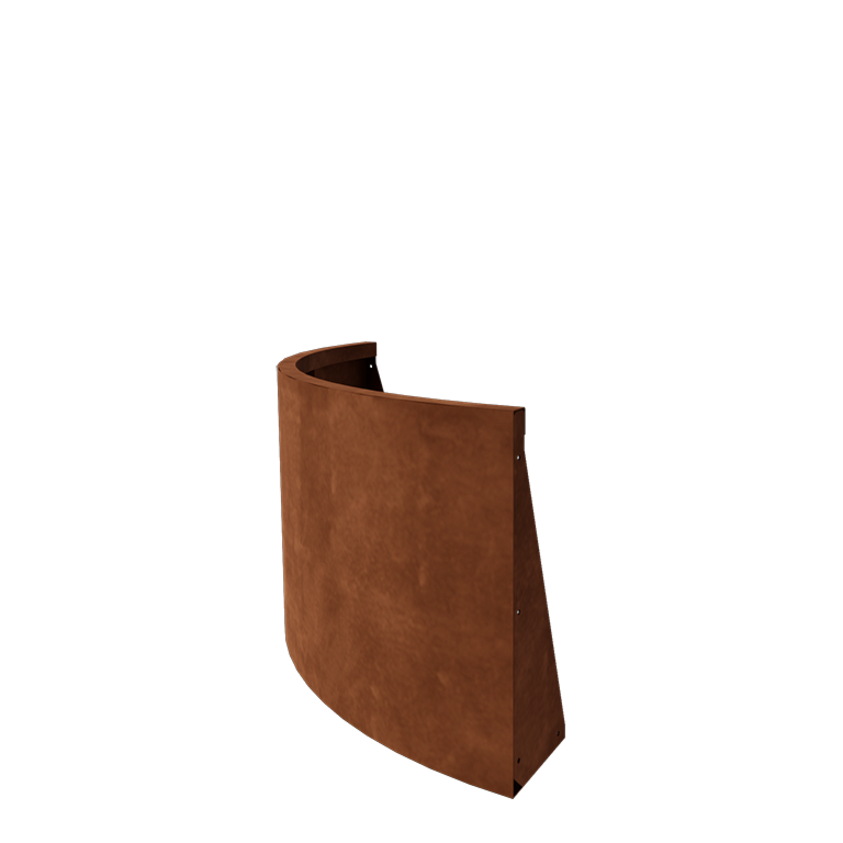 De Cortenstaal keerwand buitenbocht geeft je tuin vloeiende overgangen en krachtige lijnen. Het product heeft een afmeting van 100 x 100 x 60 cm. Het is gemaakt van 2 mm Cortenstaal. Inclusief montagemateriaal voor eenvoudige plaatsing. De brede onderrand zorgt voor stabiliteit, zonder extra verankering. Het roestproces zal binnen enkele weken tot maanden starten, waarbij een zichtbaar warme oranje-bruine kleur zich vormt. Het kan 1 tot 2 jaar duren voordat het hele roestproces voltooid is. Bestel nu en geniet van een duurzame, eigentijdse uitstraling.