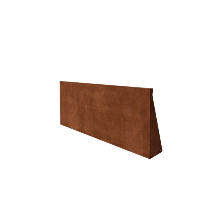 De keerwanden zijn gemaakt van hoogwaardig Cortenstaal, een staalsoort die door de natuurlijke roestlaag beschermd wordt tegen verder roesten. Dit materiaal bestaat uit ijzer met toevoegingen van koper, fosfor, silicium, nikkel en chroom. De eerste roestlaag ontstaat binnen 2 maanden na plaatsing en geeft de keerwand zijn unieke, warme uitstraling terwijl het staal onder de beschermlaag sterk en duurzaam blijft.