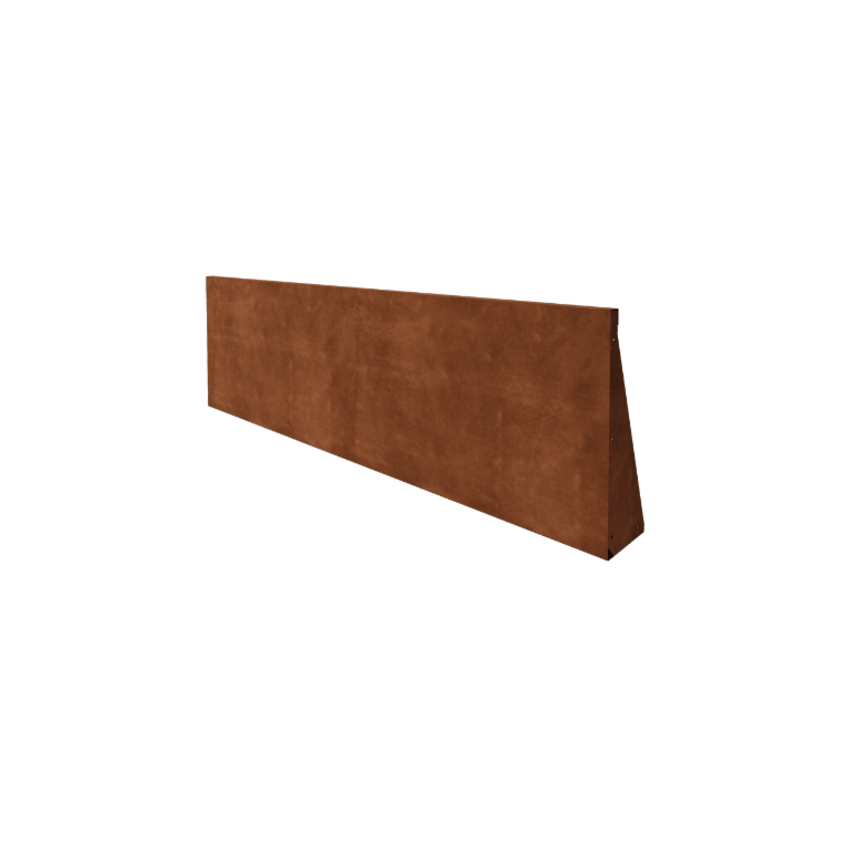 Deze keerwand is gemaakt van hoogwaardig Cortenstaal, een speciale metaallegering van ijzer, koper, fosfor, silicium, nikkel en chroom. Het materiaal vormt vanzelf een dichte roestlaag die het staal beschermt tegen verdere corrosie, waardoor doorroesten onmogelijk is en de wand een karakteristieke warme uitstraling krijgt.