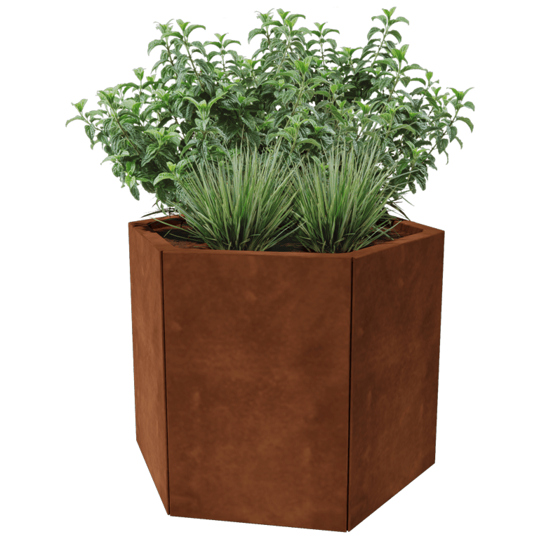 Het type Denver is een zeshoekige plantenbak. Dit is een vorm die je als plantenbak niet of nauwelijks tegenkomt. Dus wil je een plantenbak die je niet op iedere hoek van de straat ziet, dan is dit de perfecte plantenbak voor jou. De plantenbak heeft een robuuste strakke uitstraling en een mooie randafwerking. De unieke vorm van de Denver is toepasbaar in alle soorten tuinen. Door ons modulaire systeem zijn de bakken heel gemakkelijk in elkaar te zetten.