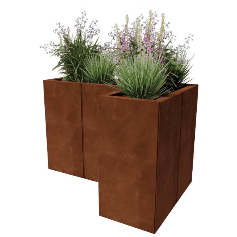 Deze plantenbak is een modulaire stalen plantenbak die als bouwpakket wordt geleverd. De plantenbak wordt opgebouwd uit losse panelen en hoekstukken. De bakken zijn geheel blind te koppelen. Er zijn geen bevestigingen zichtbaar. Door ons modulaire systeem zijn ook zeer grote afmetingen mogelijk. Door gebruik te maken van hoekstukken zijn er unieke vormen mogelijk die nergens anders standaard te verkrijgen zijn. Zie de handleiding voor meer informatie.