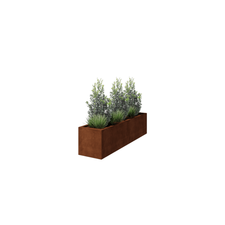 De gelaste plantenbak vereist geen montage, wat tijd en moeite bespaart. De bodemplaat zorgt voor stabiliteit en een goede afwatering, waardoor wortelrot en stilstaand water worden voorkomen. Cortenstaal is duurzaam en ontwikkelt met de tijd een prachtige warme roestkleur die je buitenruimte een natuurlijke en karaktervolle uitstraling geeft. Deze combinatie maakt de plantenbak geschikt voor zowel particuliere als zakelijke toepassingen.