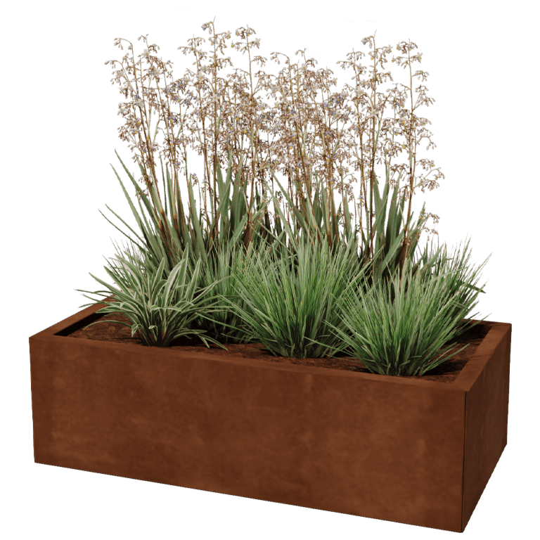 De bodemplaat van de plantenbak is als optie verkrijgbaar en gemaakt uit verzinkt staal met een dikte van 2 mm. De kleur van de bodemplaat wijkt daarmee af van de uiteindelijke roestbruine kleur van je plantenbak.
