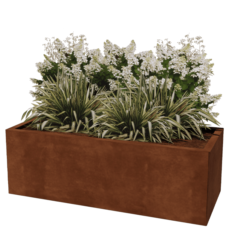 De bodemplaat van de plantenbak is als optie verkrijgbaar en gemaakt uit verzinkt staal met een dikte van 2 mm. De kleur van de bodemplaat wijkt daarmee af van de uiteindelijke roestbruine kleur van je plantenbak.