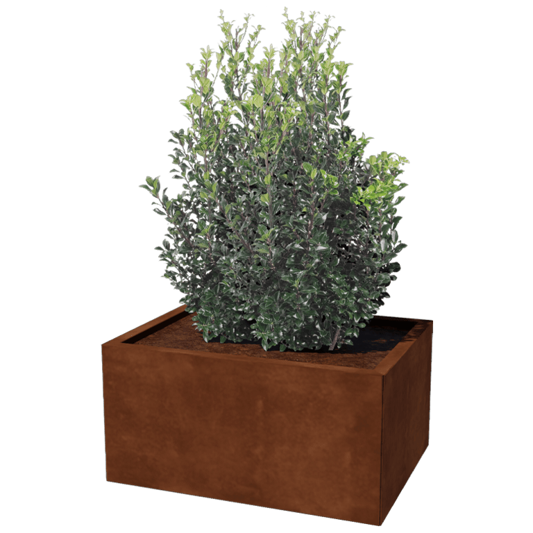 De bodemplaat van de plantenbak is als optie verkrijgbaar en gemaakt uit verzinkt staal met een dikte van 2 mm. De kleur van de bodemplaat wijkt daarmee af van de uiteindelijke roestbruine kleur van je plantenbak.