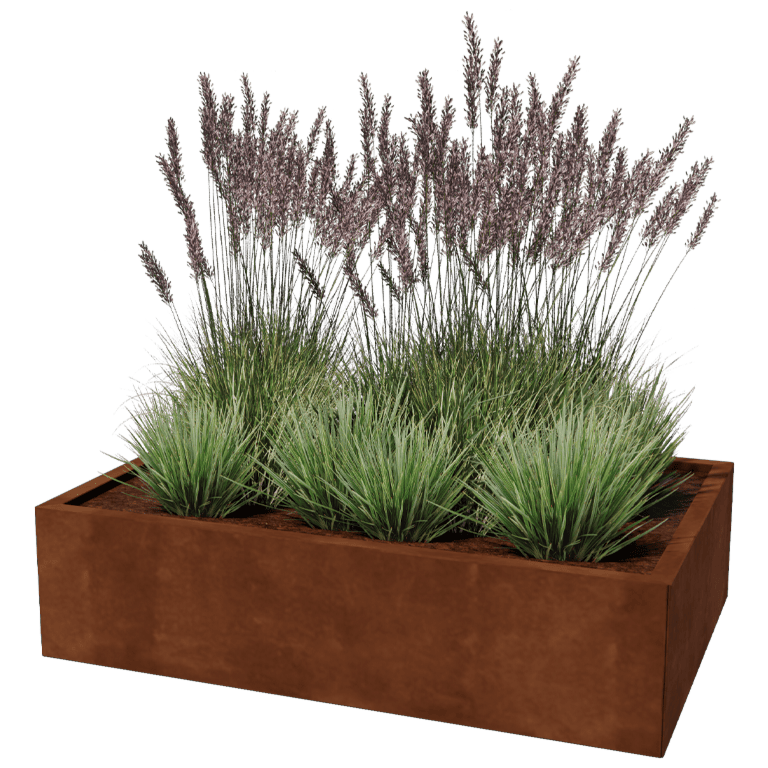 De bodemplaat van de plantenbak is als optie verkrijgbaar en gemaakt uit verzinkt staal met een dikte van 2 mm. De kleur van de bodemplaat wijkt daarmee af van de uiteindelijke roestbruine kleur van je plantenbak.