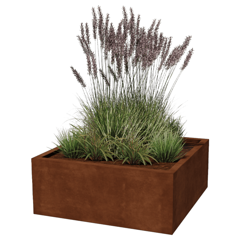 Deze plantenbakken worden vervaardigd uit hoogwaardig Corten-A staalplaat. Deze metaalsoort heeft als unieke eigenschap dat het een zeer dichte oxidehuid (roestlaag) vormt. Doorroesten is hierdoor onmogelijk. Door de dichte oxidehuid wordt het dieperliggende materiaal afgeschermd van zuurstof, hierdoor wordt de oxidatie sterkt vertraagd terwijl de corrosie zich wel voortzet. De cortenstalen plantenbak wordt ongeroest, in de grijze metaalkleur aangeleverd. De start van het roestproces begint in de eerste 2 maanden, hier is geen behandeling voor nodig. Tijdens het roestproces kan de plantenbak afgeven. Cortenstaal is een metaallegering dat bestaat uit ijzer en hieraan zijn koper, fosfor, silicium, nikkel en chroom toegevoegd.