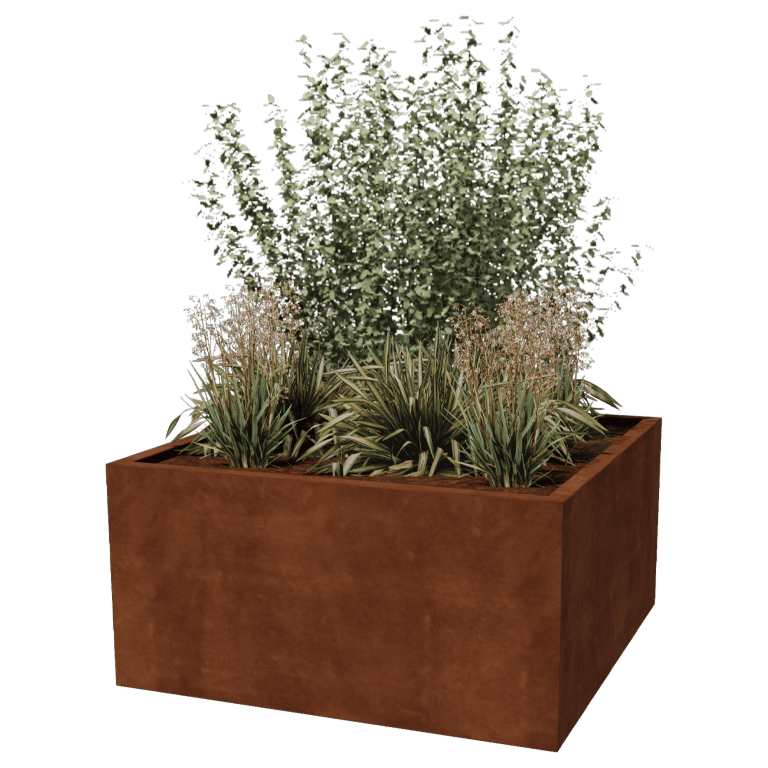 De cortenstaal gelaste plantenbak is een vierkante bak die volledig gelast is, en uit één geheel bestaat. Dit in tegenstelling tot onze andere plantenbakken, die demontabel zijn. Voor deze specifieke maat plantenbak is een bodemplaat optioneel. Deze plantenbak is esthetisch hoogwaardig en door onze eigen vakmensen in eigen huis geproduceerd.