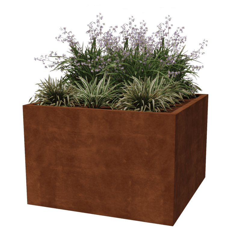 Deze plantenbakken worden vervaardigd uit hoogwaardig Corten-A staalplaat. Deze metaalsoort heeft als unieke eigenschap dat het een zeer dichte oxidehuid (roestlaag) vormt. Doorroesten is hierdoor onmogelijk. Door de dichte oxidehuid wordt het dieperliggende materiaal afgeschermd van zuurstof, hierdoor wordt de oxidatie sterkt vertraagd terwijl de corrosie zich wel voortzet. De cortenstalen plantenbak wordt ongeroest, in de grijze metaalkleur aangeleverd. De start van het roestproces begint in de eerste 2 maanden, hier is geen behandeling voor nodig. Tijdens het roestproces kan de plantenbak afgeven. Cortenstaal is een metaallegering dat bestaat uit ijzer en hieraan zijn koper, fosfor, silicium, nikkel en chroom toegevoegd.