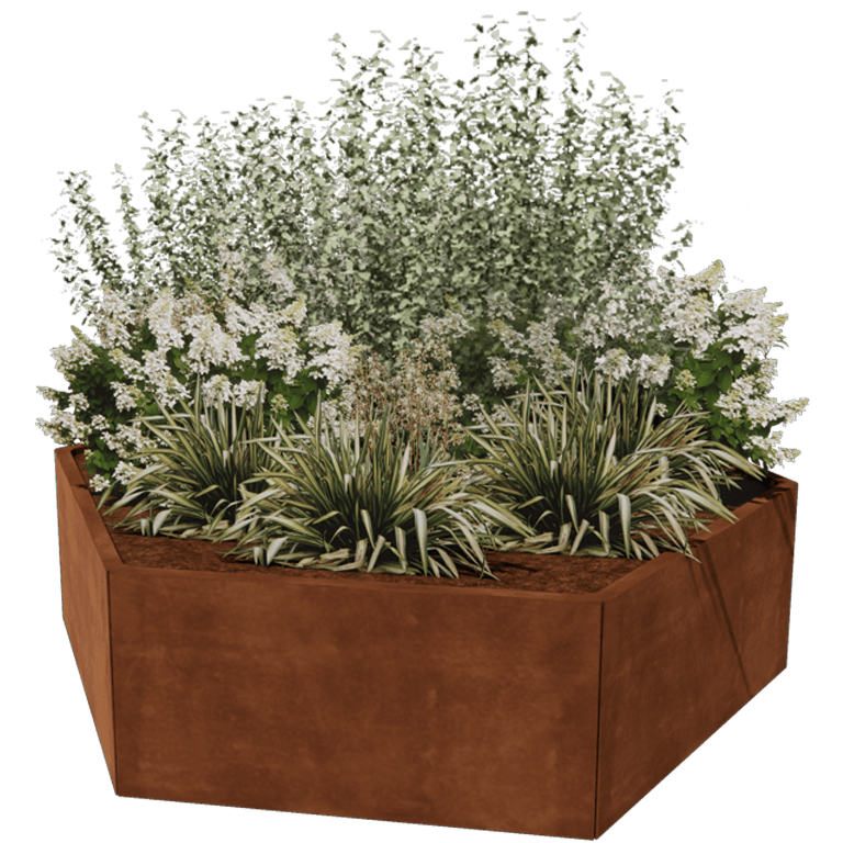 Het type Denver is een zeshoekige plantenbak. Dit is een vorm die je als plantenbak niet of nauwelijks tegenkomt. Dus wil je een plantenbak die je niet op iedere hoek van de straat ziet, dan is dit de perfecte plantenbak voor jou. De plantenbak heeft een robuuste strakke uitstraling en een mooie randafwerking. De unieke vorm van de Denver is toepasbaar in alle soorten tuinen. Door ons modulaire systeem zijn de bakken heel gemakkelijk in elkaar te zetten.