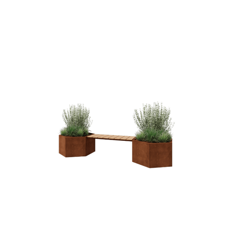 Deze modulaire plantenbak is ideaal voor grote tuinen, terrassen en openbare ruimtes waar groen en zitplezier samenkomen. Combineer meerdere zeshoekige bakken en hoekstukken voor unieke vormen en opstellingen. Dankzij het onderhoudsvriendelijke Cortenstaal is deze plantenbak perfect voor tuinliefhebbers en professionals die duurzaamheid waarderen. Gebruik kleurrijke planten of siergrassen om een levendige en natuurlijke sfeer te creƫren.