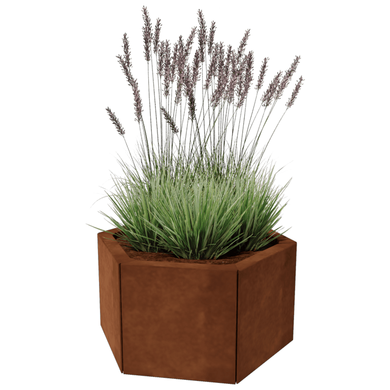 De panelen van onze modulaire plantenbakken worden vervaardigd uit hoogwaardig Corten-A staalplaat. Deze metaalsoort heeft als unieke eigenschap dat het een zeer dichte oxidehuid (roestlaag) vormt. Doorroesten is hierdoor onmogelijk. Door de dichte oxidehuid wordt het dieperliggende materiaal afgeschermd van zuurstof, hierdoor wordt de oxidatie sterk vertraagd terwijl de corrosie zich wel voortzet. De cortenstalen plantenbak wordt ongeroest, in de grijze metaalkleur aangeleverd. Het roestproces begint na weken tot 2 maanden, hier is geen behandeling voor nodig. Tijdens het roestproces kan de plantenbak afgeven. Cortenstaal is een metaallegering die bestaat uit ijzer, waaraan koper, fosfor, silicium, nikkel en chroom zijn toegevoegd.