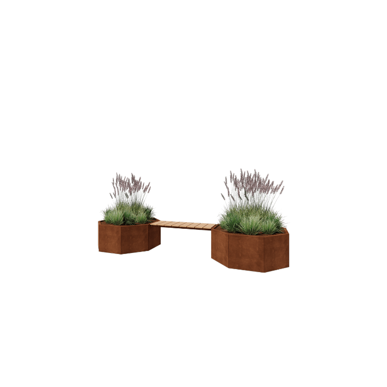 Bestel deze achthoekige Cortenstalen plantenbak met bankje en geef je tuin een robuuste, sfeervolle upgrade waar je jarenlang plezier van hebt.