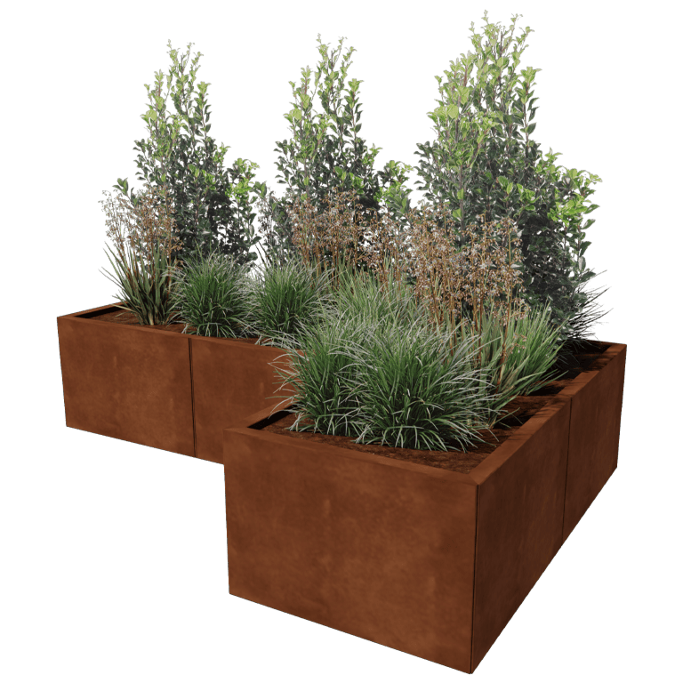 Deze plantenbak is een modulaire stalen plantenbak die als bouwpakket wordt geleverd. De plantenbak wordt opgebouwd uit losse panelen en hoekstukken. De bakken zijn geheel blind te koppelen. Er zijn geen bevestigingen zichtbaar. Door ons modulaire systeem zijn ook zeer grote afmetingen mogelijk. Door gebruik te maken van hoekstukken zijn er unieke vormen mogelijk die nergens anders standaard te verkrijgen zijn. Zie de handleiding voor meer informatie.