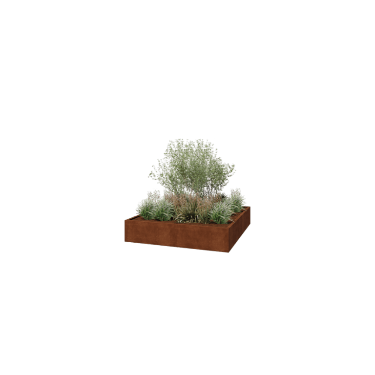 Deze vierkante plantenbak is ideaal voor prachtige grote siergrassen, kleine bomen of kleurrijke bloeiende planten. Doordat hij zonder bodemplaat wordt geleverd, plaats je hem eenvoudig direct op de aarde of het gazon, zodat hij prachtig opgaat in een natuurlijke tuinomgeving. Zijn strakke vorm past perfect bij zowel eigentijdse als industriële tuinstijlen en accentueert het groen op een krachtige manier.