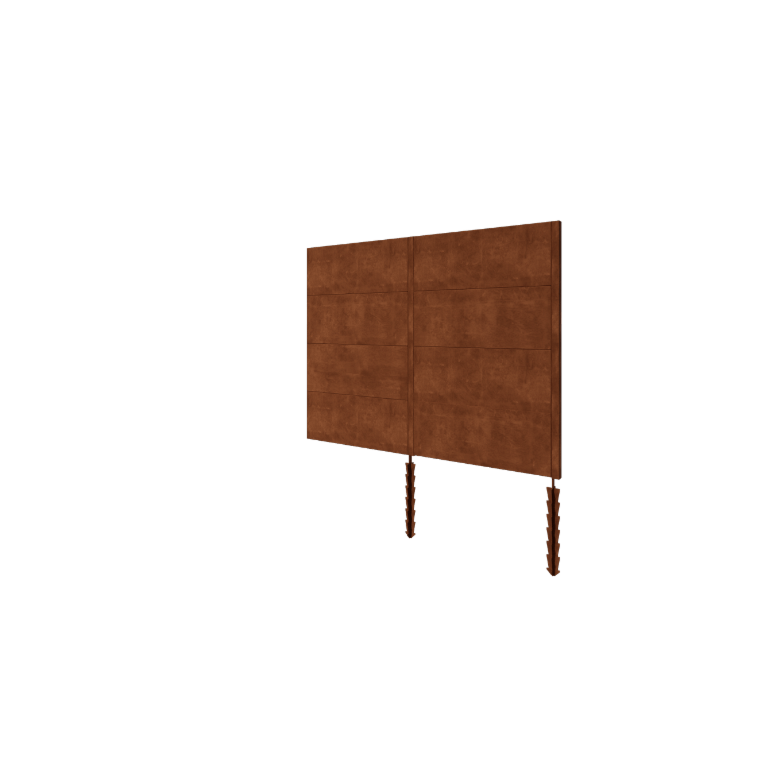 De schutting is gemaakt van hoogwaardig Cortenstaal, een ijzerlegering met koper, fosfor, silicium, nikkel en chroom. Dit materiaal vormt een beschermende oxidehuid, een natuurlijke roestlaag die verdere corrosie voorkomt. Dit proces geeft de schutting zijn karakteristieke warme bruin/oranje kleur en garandeert een lange levensduur.
