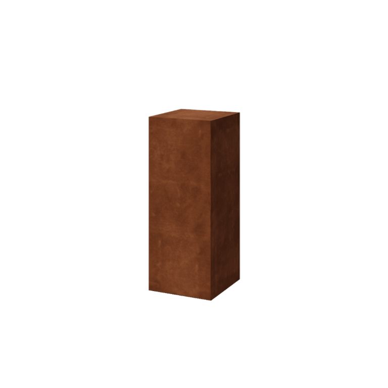 De sokkel heeft een vierkante vorm met afmetingen van 40 cm breed, 40 cm diep en een hoogte van 100 cm. Hij is gemaakt uit één stuk hoogwaardig Cortenstaal, waardoor hij stevig en stabiel staat. Het gewicht zorgt voor een solide basis, geschikt voor diverse decoratieve toepassingen.