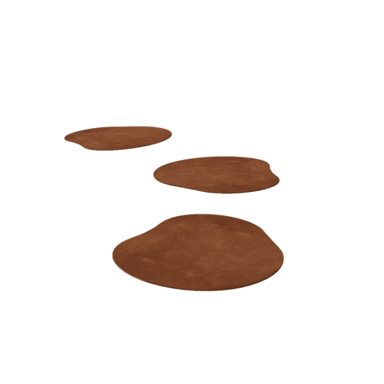 De staptegels zijn vervaardigd uit hoogwaardig Cortenstaal, een krachtige metaallegering van ijzer met koper, fosfor, silicium, nikkel en chroom. Dit materiaal vormt vanzelf een dichte oxidehuid, oftewel roestlaag, die het staal beschermt tegen verder roesten en corrosie. De unieke roestkleur ontwikkelt zich binnen enkele weken tot maanden en geeft de tegel een authentieke uitstraling.
