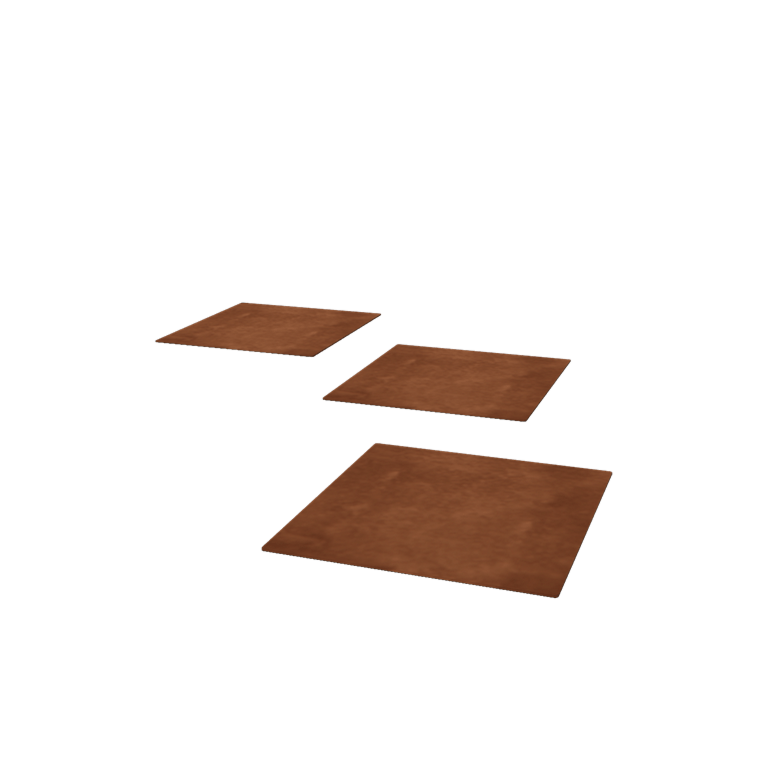 De staptegels hebben een afmeting van 40 x 40 cm en zijn vervaardigd uit één stuk cortenstaal. Dankzij hun compacte formaat passen ze perfect in allerlei tuinontwerpen en wegen ze geschikt om gemakkelijk te plaatsen zonder speciaal gereedschap. Ze liggen stabiel zodra ze in de grond of het gazon liggen.