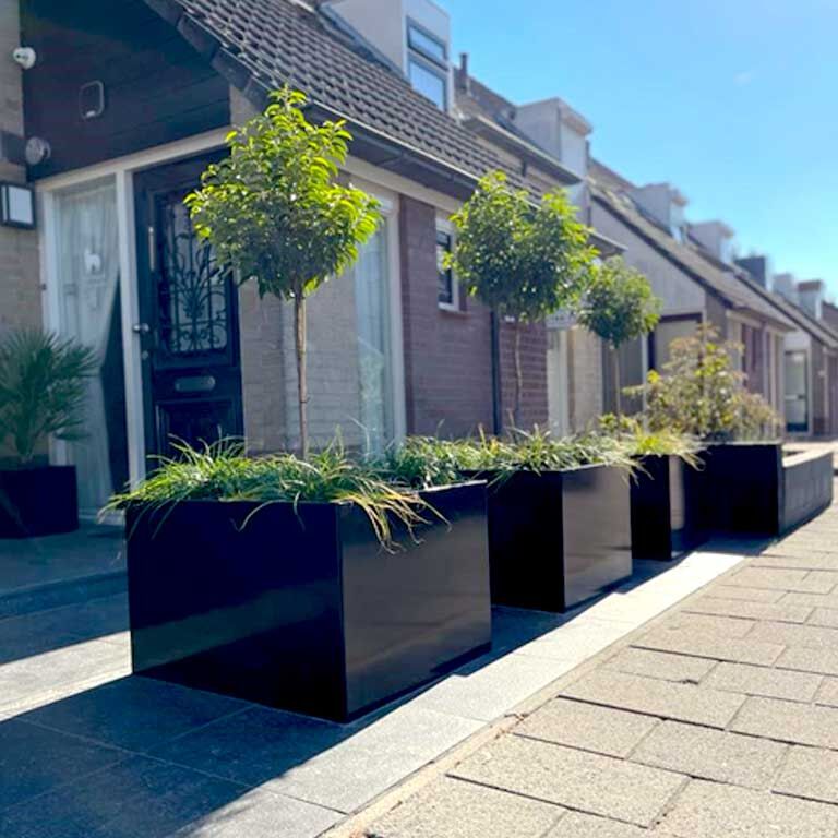 De panelen van deze plantenbakken worden vervaardigd uit hoogwaardig sendzimir verzinkt staal en vervolgens in ieder gewenste RAL-kleur gepoedercoat. Dit gebeurt speciaal voor jou. Daardoor beschik je altijd over een plantenbak van topkwaliteit. Poedercoating is een elektrostatisch proces waarbij met een spuitpistool poeder wordt aangebracht op metaal. Tijdens het uitharden in de oven worden de poederdeeltjes door de warmte eerst vloeibaar. Daarna stroperig en tenslotte uitgehard tot een mooie, duurzame coating. Door de coating is de plantenbak uiterst UV bestendig. Deze plantenbak past in iedere tuin en is een echte eyecatcher.