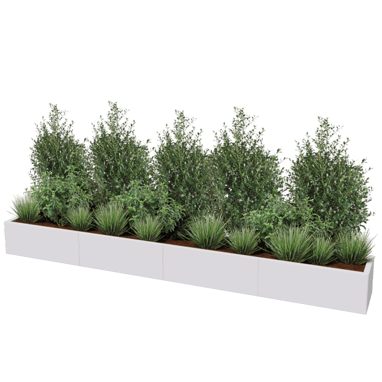 Deze plantenbak is een modulaire stalen plantenbak die als bouwpakket geleverd wordt. De plantenbak wordt opgebouwd uit losse panelen en hoekstukken. De bakken zijn geheel blind te koppelen. Er zitten geen bevestigingen in het zicht. Door ons modulaire systeem zijn ook zeer grote afmetingen mogelijk. Door gebruik te maken van hoekstukken zijn er unieke vormen mogelijk die nergens anders standaard te verkrijgen zijn. Zie de handleiding voor meer informatie.