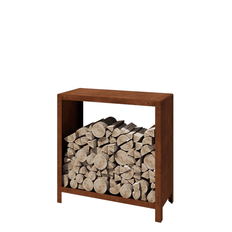 Zet de houtopslag op een vlakke en goed geventileerde plek voor de beste resultaten. Onderhoud beperkt zich tot het af en toe verwijderen van stof of vuil met een zachte borstel. Door de natuurlijke roestlaag is geen extra behandeling nodig, wat het onderhoud eenvoudig maakt.