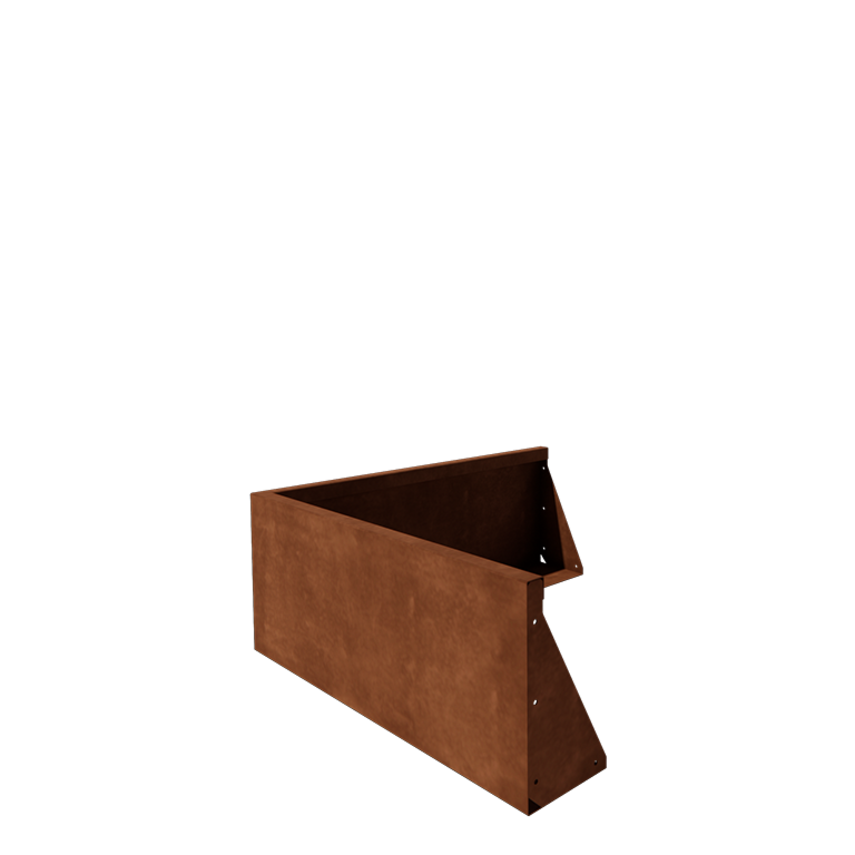 Geef je tuin krachtige, strakke hoeken met de Cortenstaal keerwand buitenhoek. Het element heeft afmetingen van 100 x 100 x 40 cm. Het heeft een materiaaldikte van 2 mm. De brede onderrand zorgt voor stabiliteit zonder verankering en maakt plaatsing eenvoudig. Combineer meerdere keerwanden voor naadloze, modulaire hoeken en verhoogde borders. Het roestproces zal binnen enkele weken tot maanden starten, waarbij een zichtbaar warme oranje-bruine kleur zich vormt. Het kan 1 tot 2 jaar duren voordat het hele roestproces voltooid is. Bestel nu en geniet jarenlang van een duurzame, onderhoudsarme keerwand.