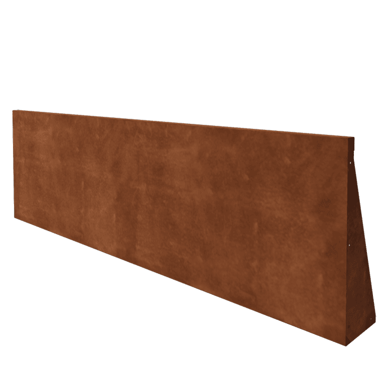 De keerwand vraagt weinig onderhoud. Houd de oppervlakte schoon door eventuele vuilresten met een zachte borstel en water te verwijderen. Vermijd het gebruik van agressieve schoonmaakmiddelen. Na verloop van tijd ontwikkelt de keerwand zijn karakteristieke roestkleur, zonder dat je extra beschermingslagen hoeft aan te brengen.