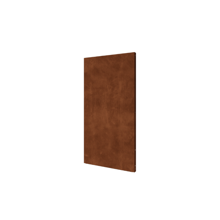 Het paneel is vervaardigd uit hoogwaardig Cortenstaal, een sterke metaallegering die ijzer, koper, fosfor, silicium, nikkel en chroom combineert. De unieke eigenschap van dit materiaal is de natuurlijke beschermlaag die ontstaat door oxidatie. Deze roestlaag beschermt het paneel langdurig tegen doorroesten en weersinvloeden, wat zorgt voor een onverslijtbare uitstraling.
