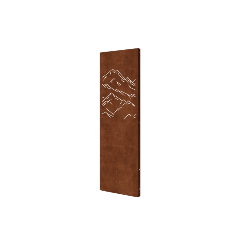 Dit paneel is gemaakt van hoogwaardig Cortenstaal. Het materiaal vormt een dichte oxidehuid die beschermt tegen verdere roestvorming en het staal duurzaam maakt. Hierdoor blijft het paneel jarenlang mooi en sterk, ondanks wisselende weersomstandigheden.