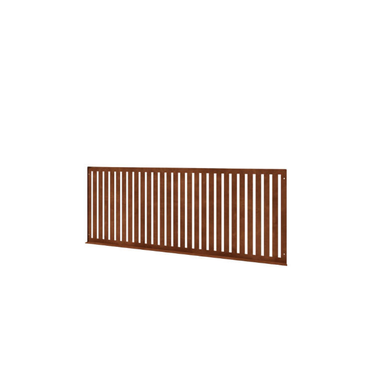 Het paneel wordt ongeroest geleverd en ontwikkelt vanzelf een beschermende roestlaag onder invloed van weer en wind. Af en toe afspuiten met water en zorgen voor voldoende luchtcirculatie verlengt de levensduur en behoudt de mooie uitstraling van het sierhekwerk.