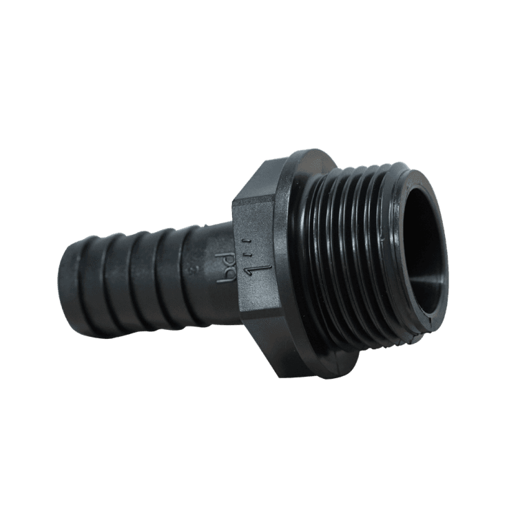 Deze slangpilaar verbindt een slang van 20 mm met een 1 inch aansluiting in de watertafel.