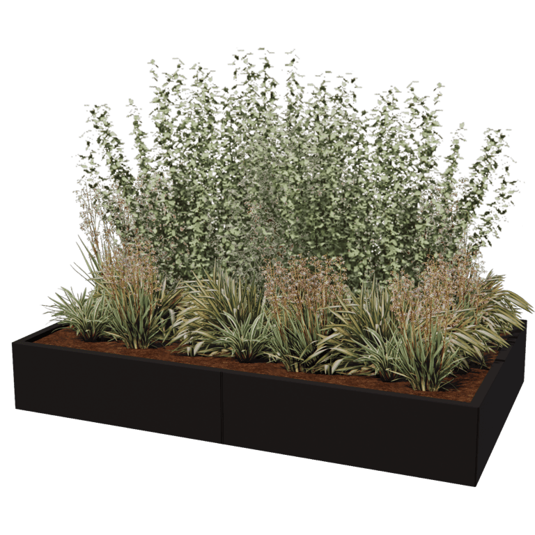 Deze plantenbak is een modulaire stalen plantenbak die als bouwpakket geleverd wordt. De plantenbak wordt opgebouwd uit losse panelen en hoekstukken. De bakken zijn geheel blind te koppelen. Er zitten geen bevestigingen in het zicht. Door ons modulaire systeem zijn ook zeer grote afmetingen mogelijk. Door gebruik te maken van hoekstukken zijn er unieke vormen mogelijk die nergens anders standaard te verkrijgen zijn. Zie de handleiding voor meer informatie.