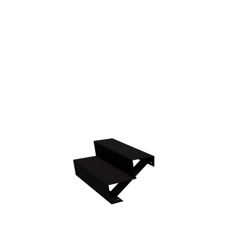 De trap is vervaardigd uit hoogwaardig sendzimir verzinkt staal, dat duurzaam en bestand is tegen roest. Vervolgens wordt het staal twee keer gepoedercoat in de kleur RAL9005 mat zwart. Dit elektrostatisch aangebrachte poeder verhardt in de oven tot een stevige laag die de trap beschermt tegen UV-straling en weersinvloeden.