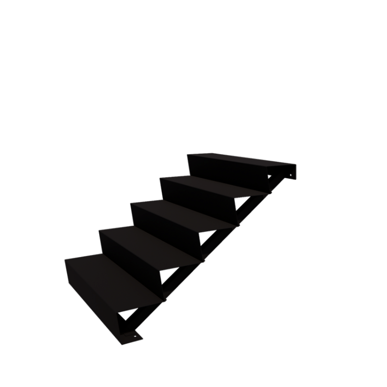 Gemaakt van hoogwaardig staal met een 2 mm dikte, is deze tuintrap bestand tegen de Nederlandse weersomstandigheden. De matte zwarte poedercoating (RAL9005) beschermt het staal tegen roest en slijtage, waardoor de trap lang mooi en functioneel blijft.
