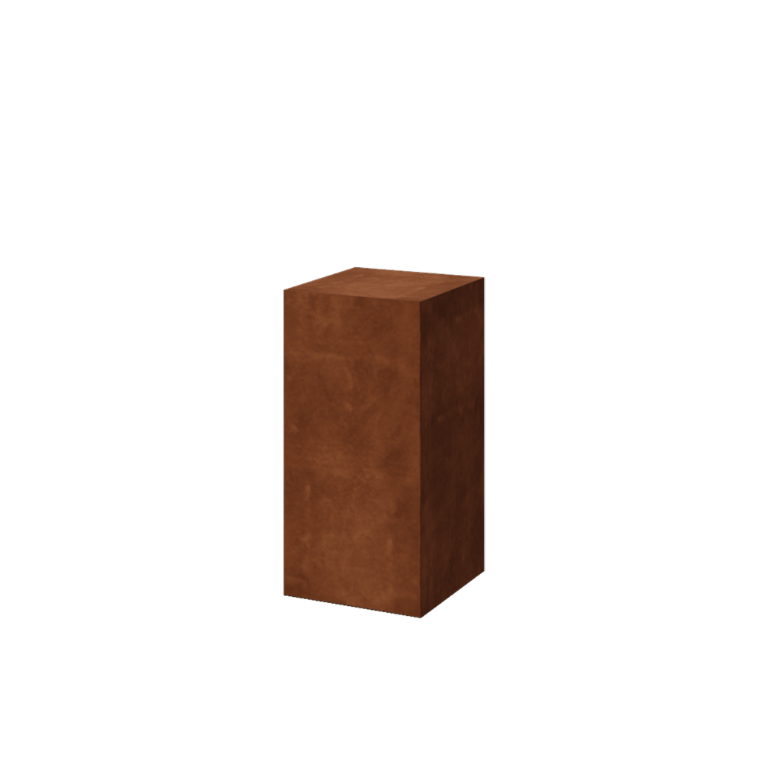De Ohio sokkel heeft een vierkante vorm met afmetingen van 40 x 40 x 80 cm en is vervaardigd uit één stuk hoogwaardig Cortenstaal. Dit stevige en zware object staat stabiel, zodat je er veilig je favoriete decoraties op kunt plaatsen. De sokkel wordt ongeroest geleverd, waarna het natuurlijke roestproces begint.